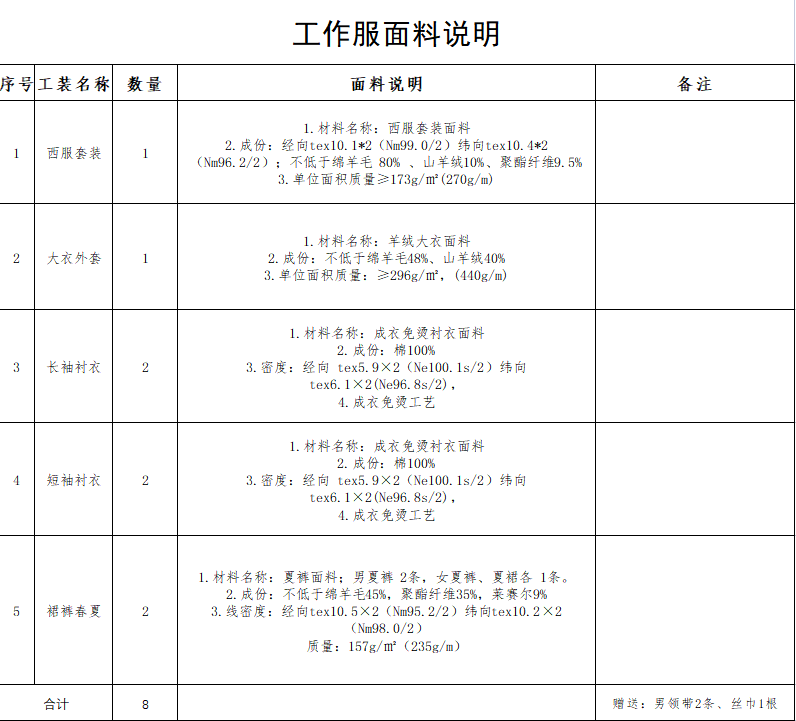 4.采購規(guī)模及內(nèi)容概述:眉山市東岸建設(shè)有限公司服裝采購共計(jì)61套(暫定)。