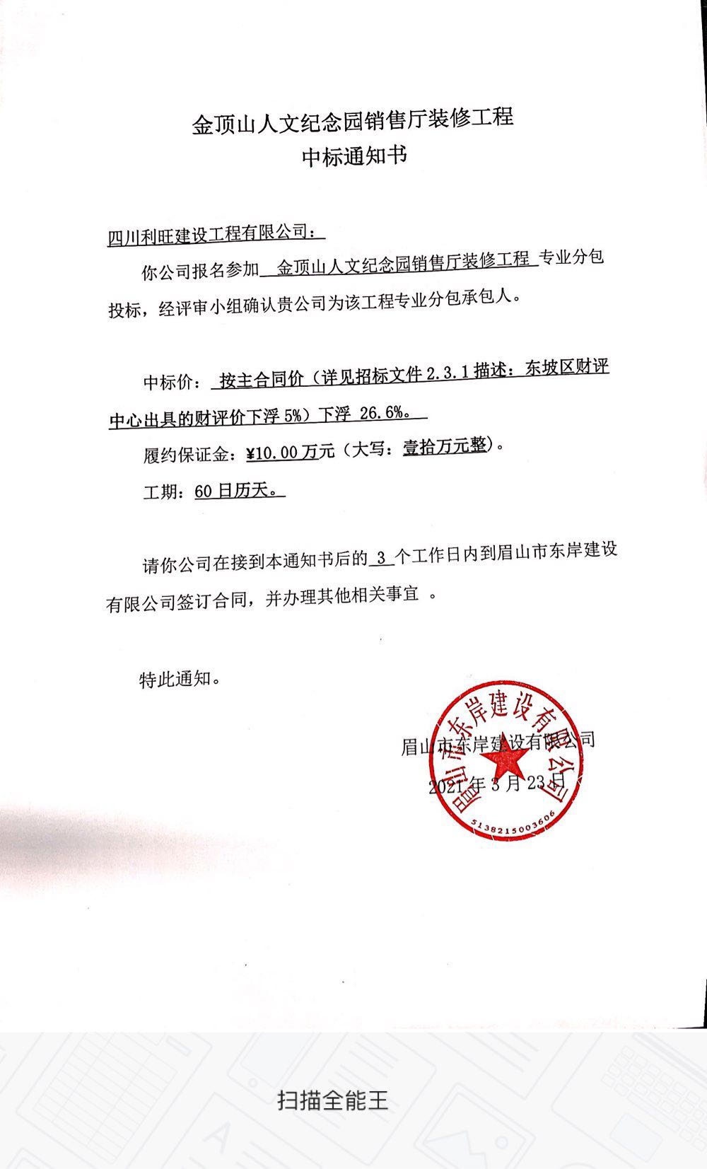 金頂山人文紀念園銷售廳裝修工程中標公示