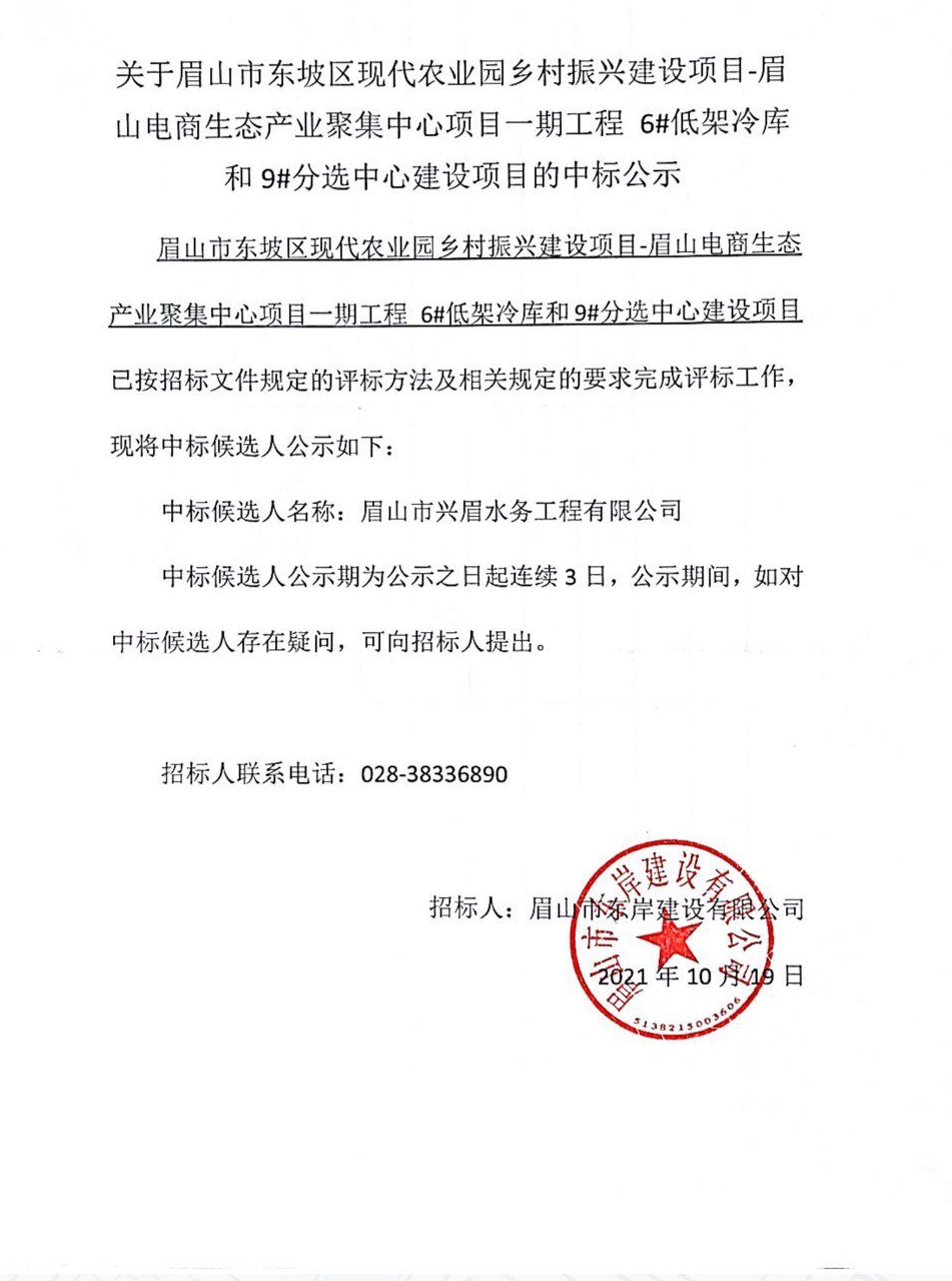 眉山市東坡區(qū)現(xiàn)代農(nóng)業(yè)園鄉(xiāng)村振興建設(shè)項(xiàng)目-眉山電商生態(tài)產(chǎn)業(yè)聚集中心項(xiàng)目一期工程 6#低架冷庫和9#分選中心建設(shè)項(xiàng)目中標(biāo)公示
